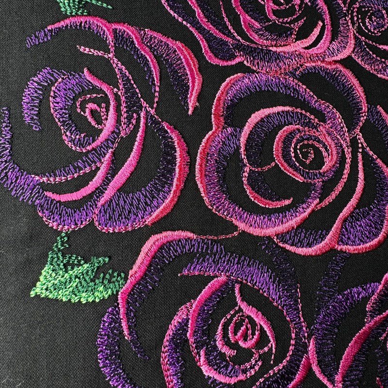 A bouquet of roses emerges from the dark and into the light on this stunning cushion. Embroidered on black cotton with a complementary batik cotton side panel, this cushion measures approximately 13"sq and is supplied with a polyester filled insert. The cushion cover can be machine washed on cool and also tumble dried, on cool. The insert is surface washable only.
