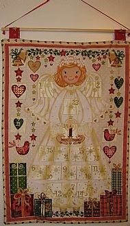 The advent calendars are ready to use and have little pockets on the front for you to put little gifts or chocolate in. They are backed with Christmas fabric and are wadded. They have dowling and Christmas coloured braid with which to hang them. They can also be personalised with a name. The calendars are priced at £25.00 each, or £28.00 if personalised, with £5.00 post and packing.